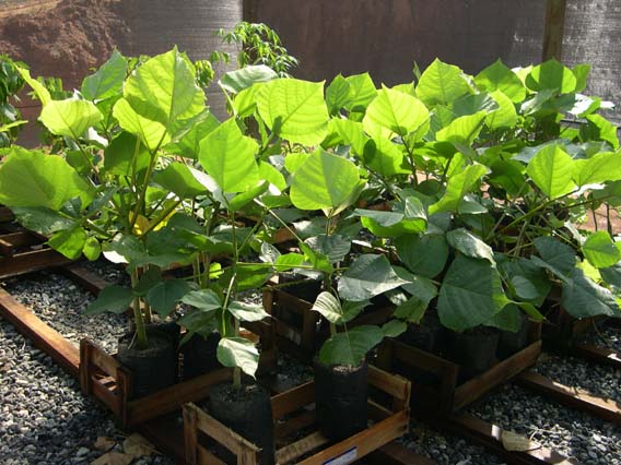 Several species of seedlings in small plastic bags. But soon (in 2 weeks to 2 months) they will have to be moved to bigger bags. Soon the roots will start spiralling even in these larger bags. So don't do it with plastic bags.